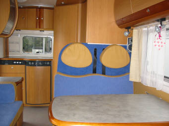 der Dinette lässt sich nach Verbreiterung ein Schlafplatz für zwei bauen, und auch die Längscoutch lässt sich noch für ein Bett verbreitern. |