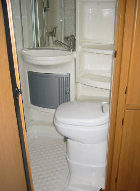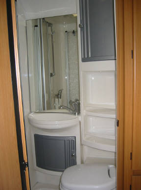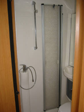 Falttür kann der Innenrum spritzwassergeschützt zu einer Duschkabine verwandelt werden. Etwas eng, aber durchaus praktikabel. |